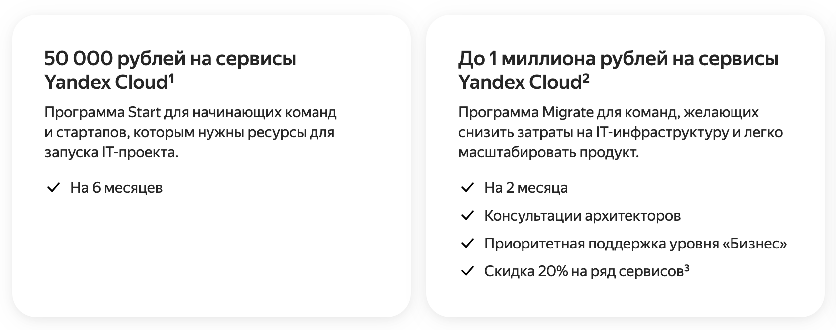 1 миллион на использование инфраструктуры Yandex Cloud, это неплохая поддержка для стартапа. Сложно представить интернет-проект, которому не хватило бы этой суммы на оплату облачных сервисов хотя бы на год. Нам бы хватило и на два года – как раз тот срок, после которого становится ясно, будет проект жить или пора закрываться.